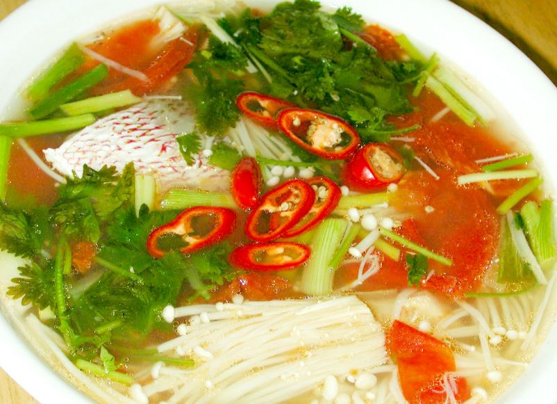 - Cách làm: cá trộn đều với bột thái bạch. Hoa hải đường tách từng cánh, rửa sạch bằng nước muôi, để ráo nước. Cho 3 bát nước vào nổi đun sôi, cho cá, đương quy, thu hải đường vào, đun to lửa đên lúc sôi chuyến sang nhỏ lửa, đun khoảng 5 phút, thêm muôi vào khuây đều, tắt bếp, bày ra bát.